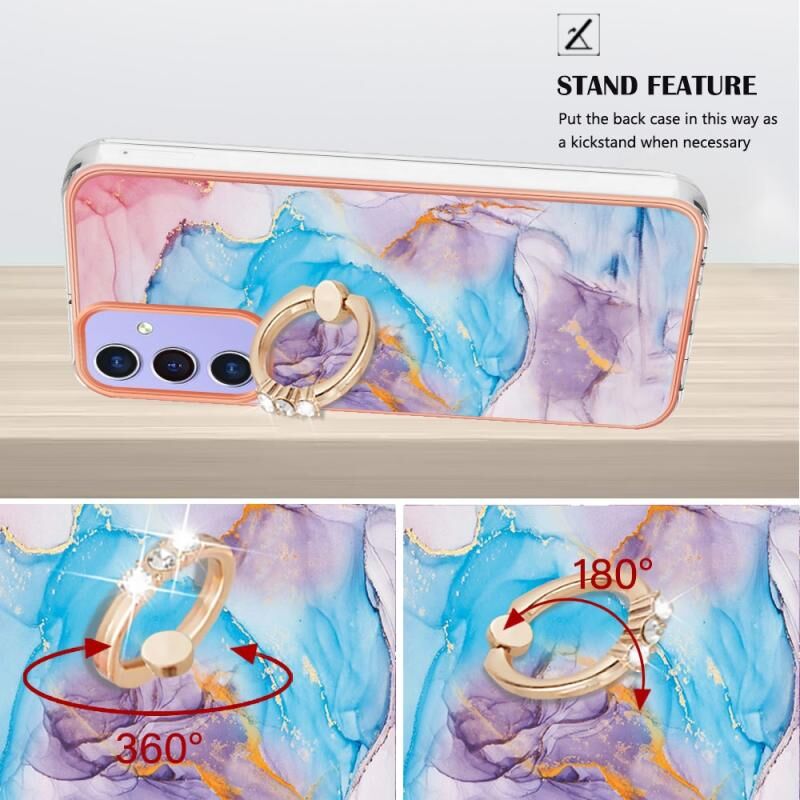 Θήκη για Samsung Galaxy A16 5G με Γαλβανισμένο Σχέδιο IMD TPU Αντικραδασμική με Δαχτυλίδι Στήριξης από Κρύσταλλα (Λευκό Μάρμαρο Γαλαξία)
