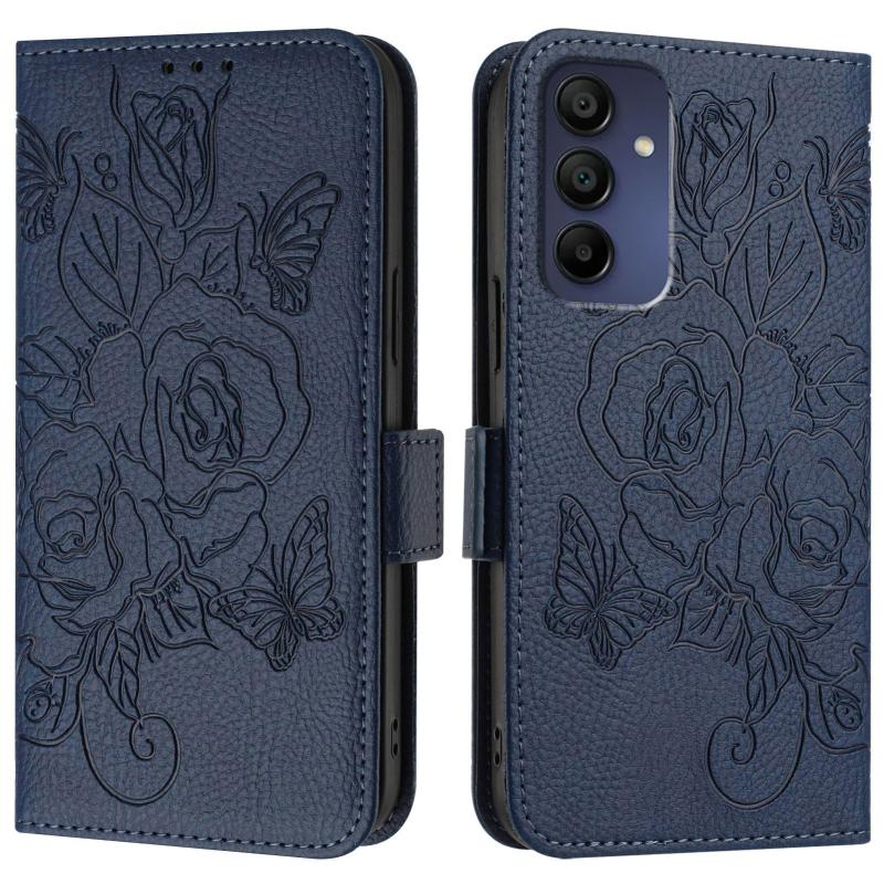 For Samsung Galaxy A16 5G Embossed Rose RFID Anti-theft Leather Phone Case(Dark Blue)
