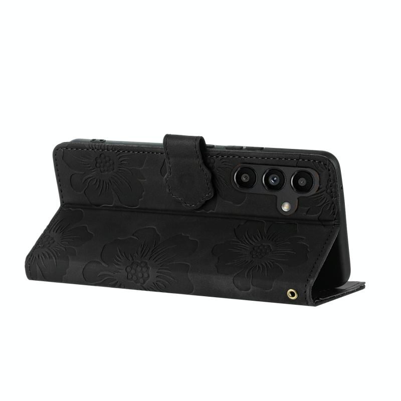 Για Samsung Galaxy A16 5G λουλούδι ανάγλυφο μοτίβο δερμάτινη θήκη τηλεφώνου (μαύρο)