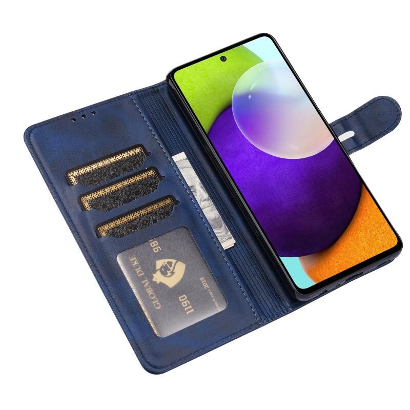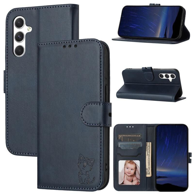 Για Samsung Galaxy A16 5G Παγκόσμια ανάγλυφο Happy Cat μοτίβο Flip δέρμα τηλέφωνο υπόθεση (μπλε)