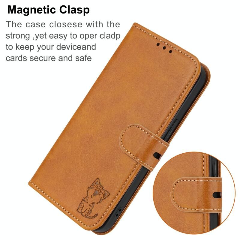 Για Samsung Galaxy A16 5G Παγκόσμια ανάγλυφο Happy Cat μοτίβο Flip δέρμα τηλέφωνο υπόθεση (κίτρινο)