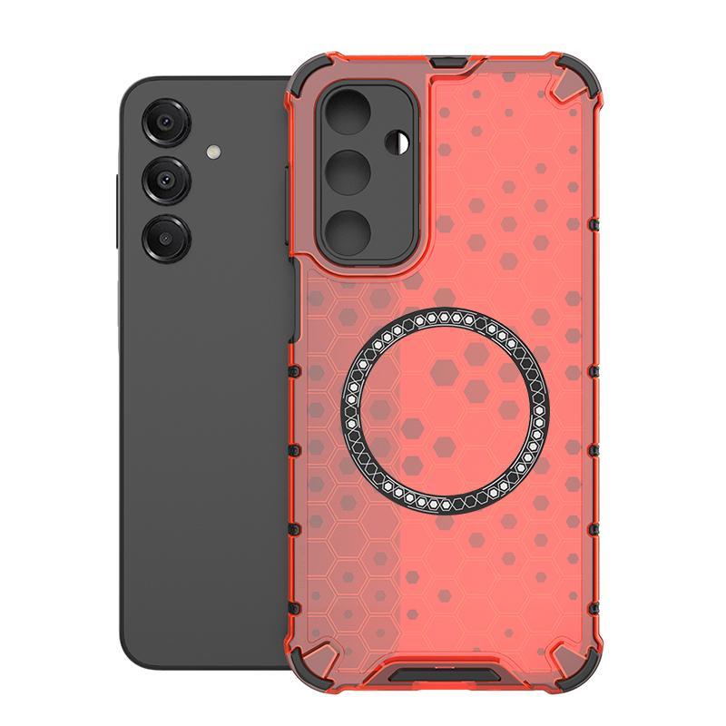 For Samsung Galaxy A16 5G Honeycomb Magnetic Ring Shockproof Phone Case(Red)