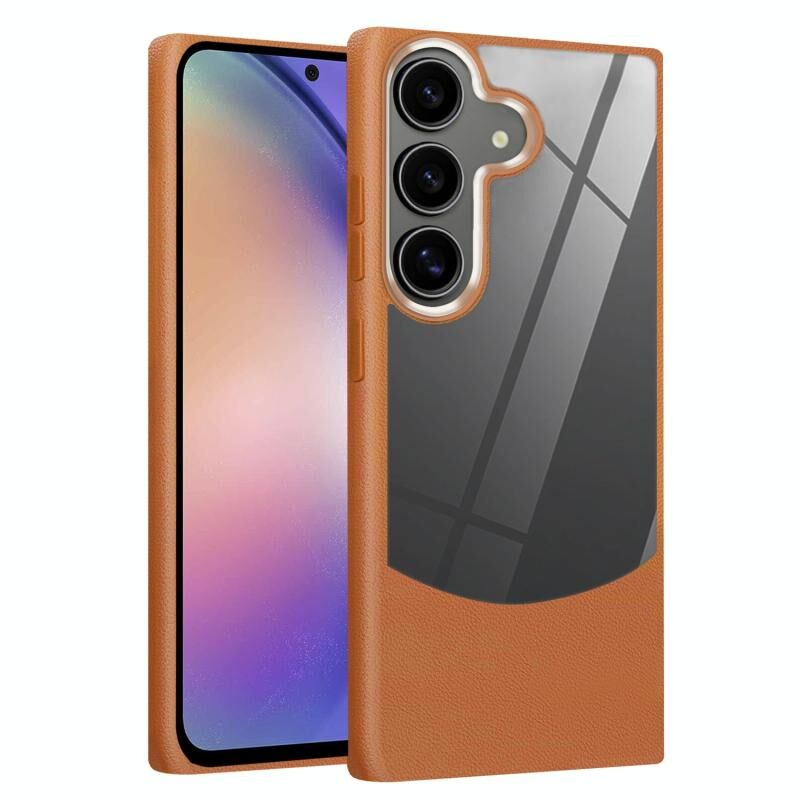 Θήκη κινητού τηλεφώνου Samsung Galaxy A16 5G υβριδική από TPU και ακρυλικό με υφή δέρματος λυτσί (Γκρι)