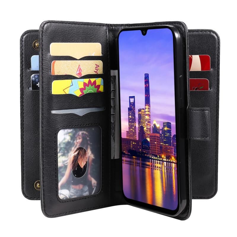 Για Samsung Galaxy A16 5G Πολυλειτουργικό πορτοφόλι 10 υποδοχές για κάρτες Δερμάτινη θήκη τηλεφώνου (μαύρο)
