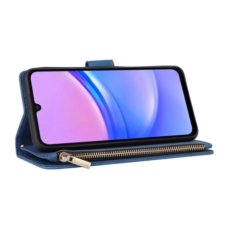 Για Samsung Galaxy A16 5G Πολυλειτουργικό παγωμένο φερμουάρ πορτοφόλι δερμάτινη θήκη τηλεφώνου (μπλε)