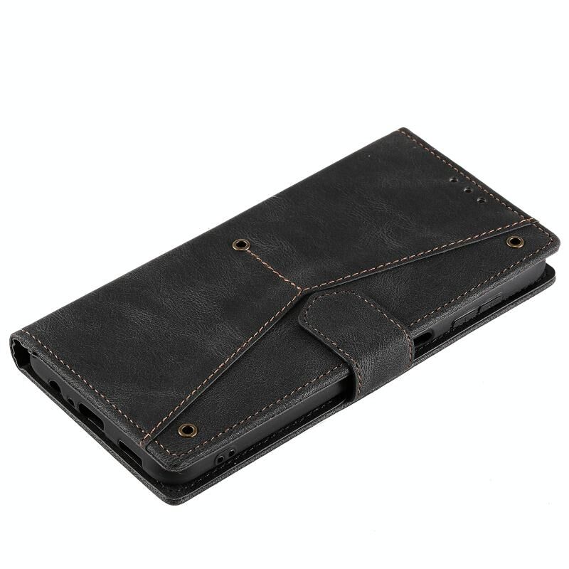 Θήκη κινητού Samsung Galaxy A16 5G από δέρμα μοσχαριού με υφή, ραφή που θυμίζει νύχι (Μαύρο)