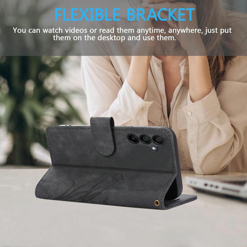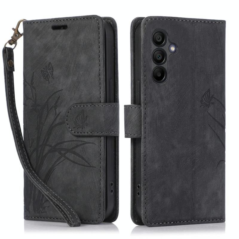 For Samsung Galaxy A16 5G Orchid Butterfly Embossed Leather Phone Case(Black)