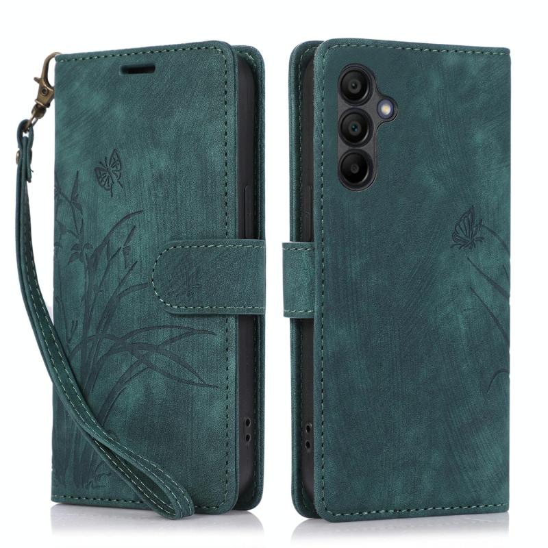 For Samsung Galaxy A16 5G Orchid Butterfly Embossed Leather Phone Case(Green)