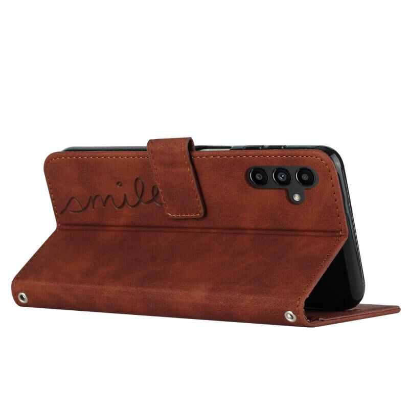 Για Samsung Galaxy A16 5G δέρμα αίσθηση καρδιά ανάγλυφη δερμάτινη θήκη τηλεφώνου με μακρύ κορδόνι (καφέ)