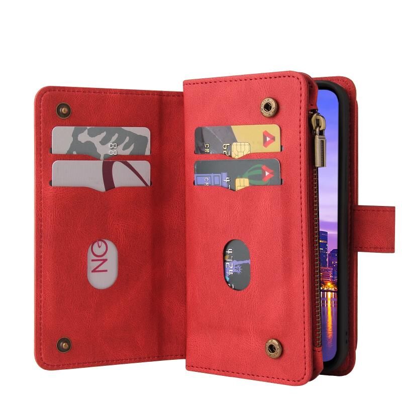 Για Samsung Galaxy A16 5G δέρμα αίσθηση πολλαπλών καρτών υποδοχές φερμουάρ πορτοφόλι δερμάτινη θήκη τηλεφώνου (κόκκινο)