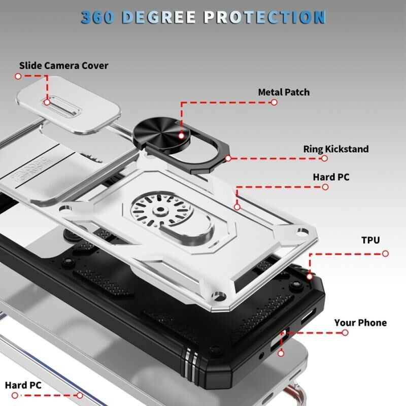 Για Samsung Galaxy A16 5G συρόμενη θήκη τηλεφώνου Camshield TPU + PC με θήκη (Λευκό + Μαύρο)