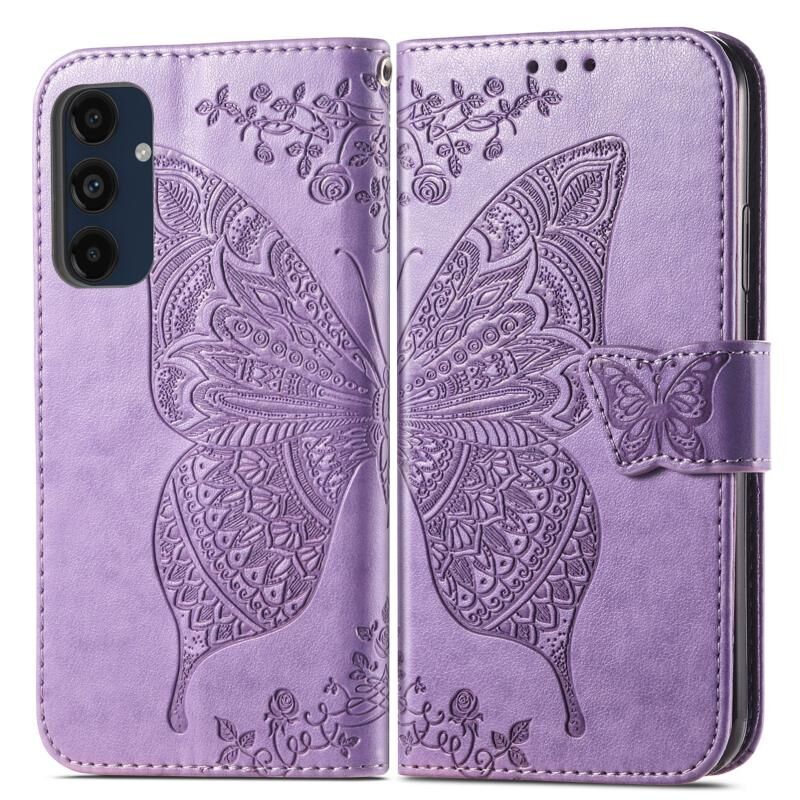 Για Samsung Galaxy A16 πεταλούδα αγάπη λουλούδι ανάγλυφο δερμάτινη θήκη τηλεφώνου (Light Purple)