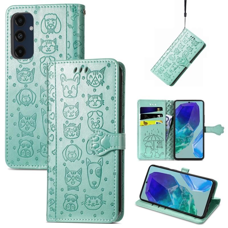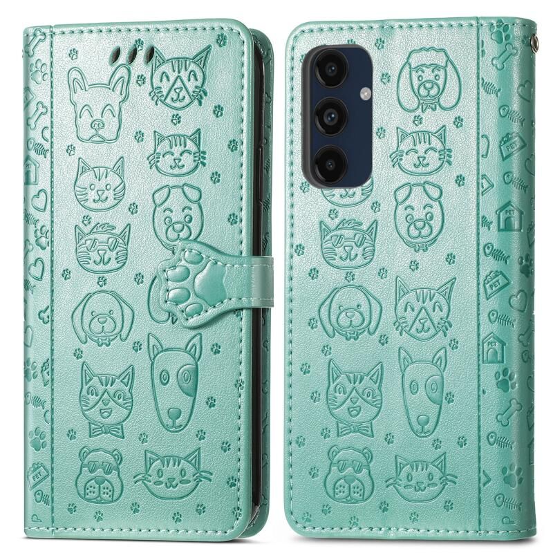 Θήκη τηλεφώνου Samsung Galaxy A16 με ανάγλυφο σχέδιο γάτας και σκύλου από δέρμα (Μωβ)