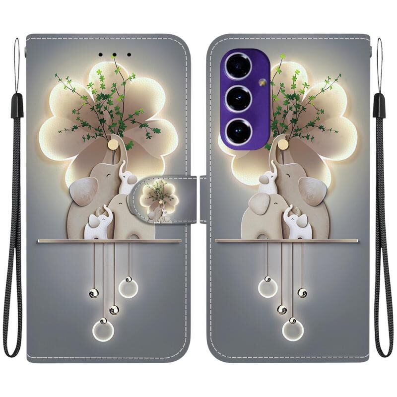 Θήκη τηλεφώνου Samsung Galaxy A16 με κρυσταλλική υφή, πολύχρωμη σχεδίαση από δέρμα (Ελέφαντες)