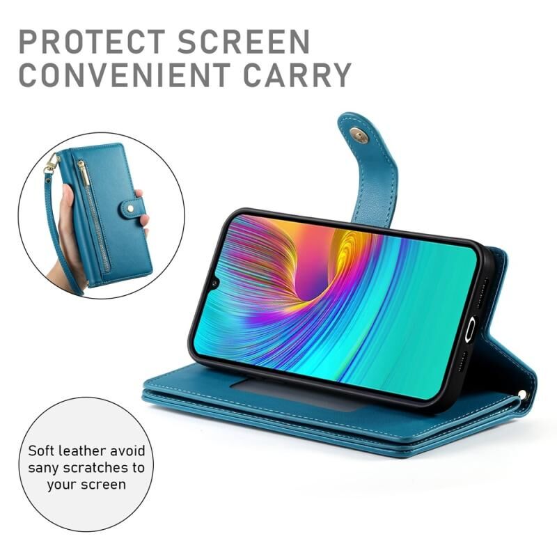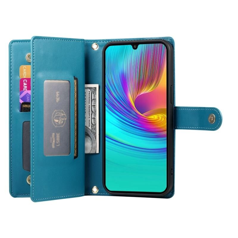Για Samsung Galaxy A16 Nine Card-slot φερμουάρ τσάντα πορτοφόλι δερμάτινη θήκη τηλεφώνου (Μπλε)
