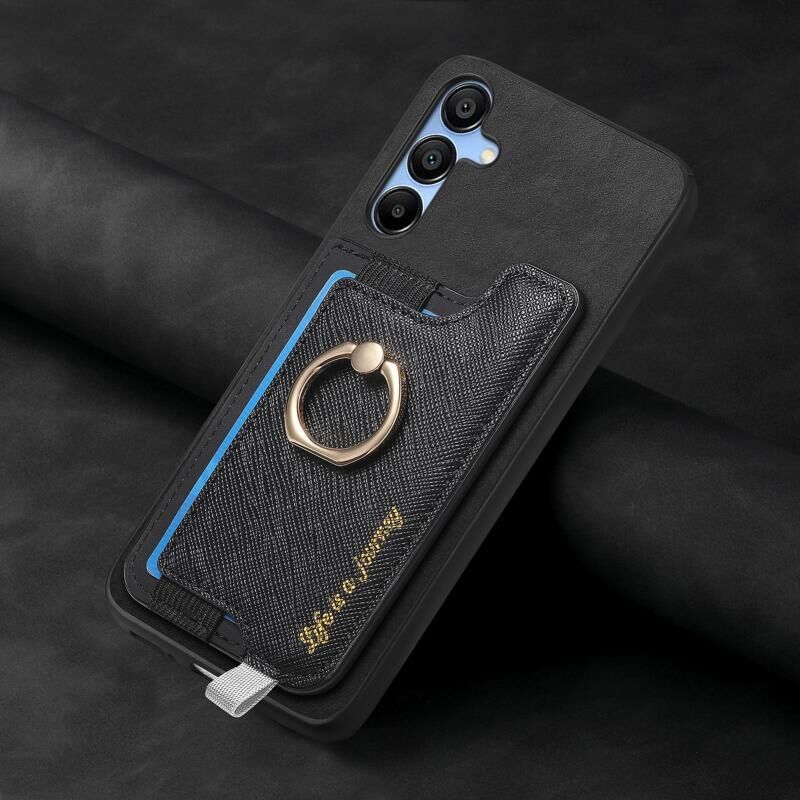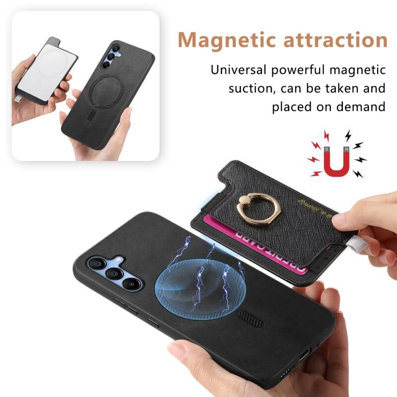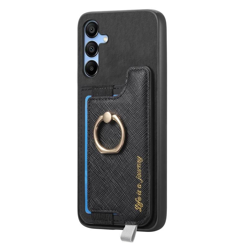 Θήκη κινητού Samsung Galaxy A16 Retro Cross Leather Ring Horizontal Insert Card Bag MagSafe (Μαύρο)