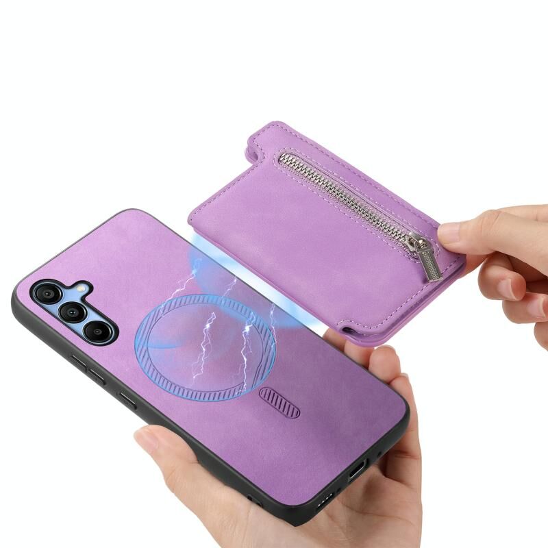 Θήκη κινητού Samsung Galaxy A16 Retro MagSafe με φερμουάρ και θήκη για κάρτες (Κίτρινο)