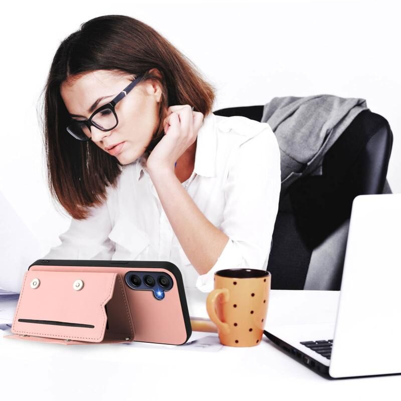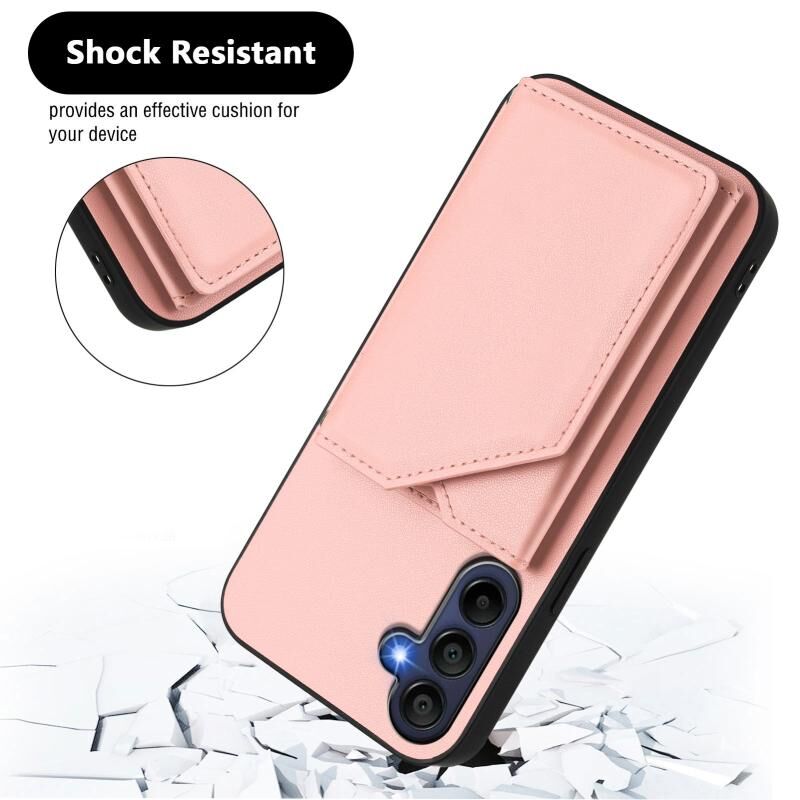 Για Samsung Galaxy A16 δέρμα αίσθηση τέσσερις υποδοχές κάρτα τηλέφωνο υπόθεση με λουράκι καρπού (ρόζ)