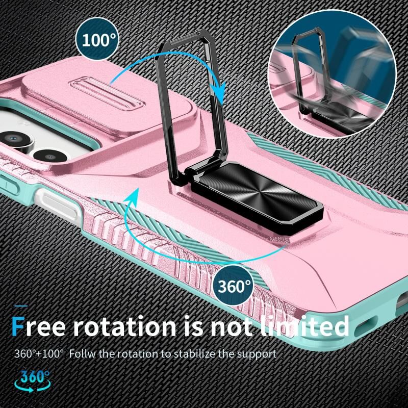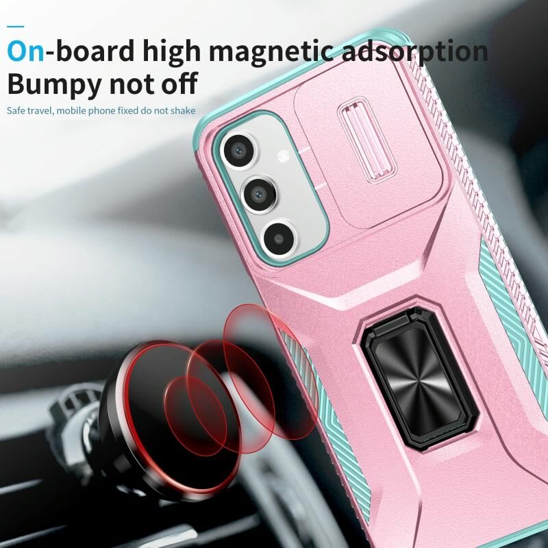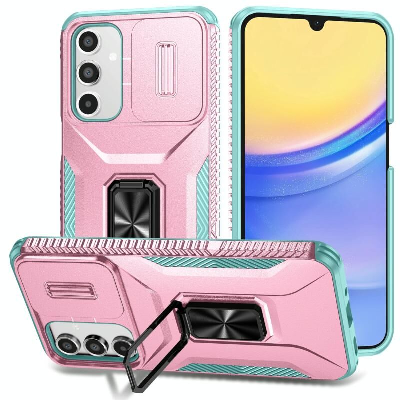 Για το Samsung Galaxy A16 Συρόμενη θήκη τηλεφώνου με προστατευτικό κάλυμμα κάμερας (ροζ + γκρι-πράσινο)