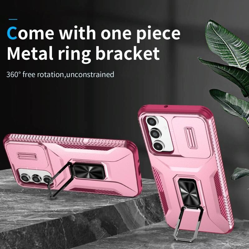 Για το Samsung Galaxy A16 Συρόμενη θήκη τηλεφώνου με κάλυμμα κάμερας (ροζ + ροζ κόκκινο)