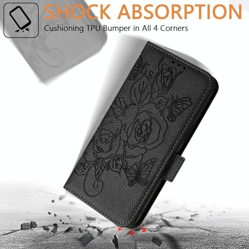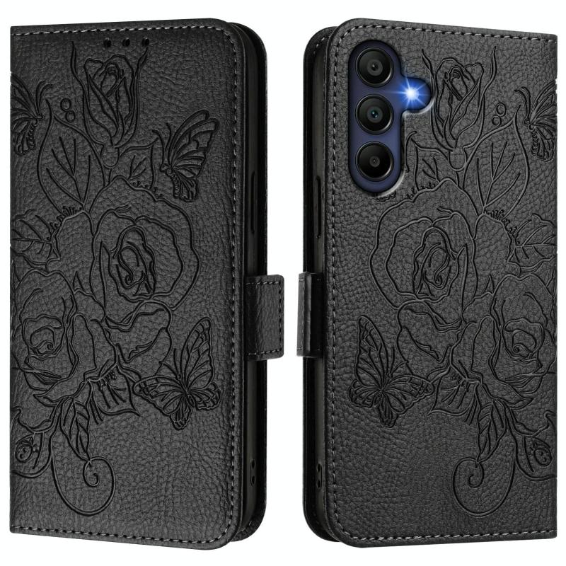For Samsung Galaxy A17 4G Embossed Rose RFID Anti-theft Leather Phone Case(Black)