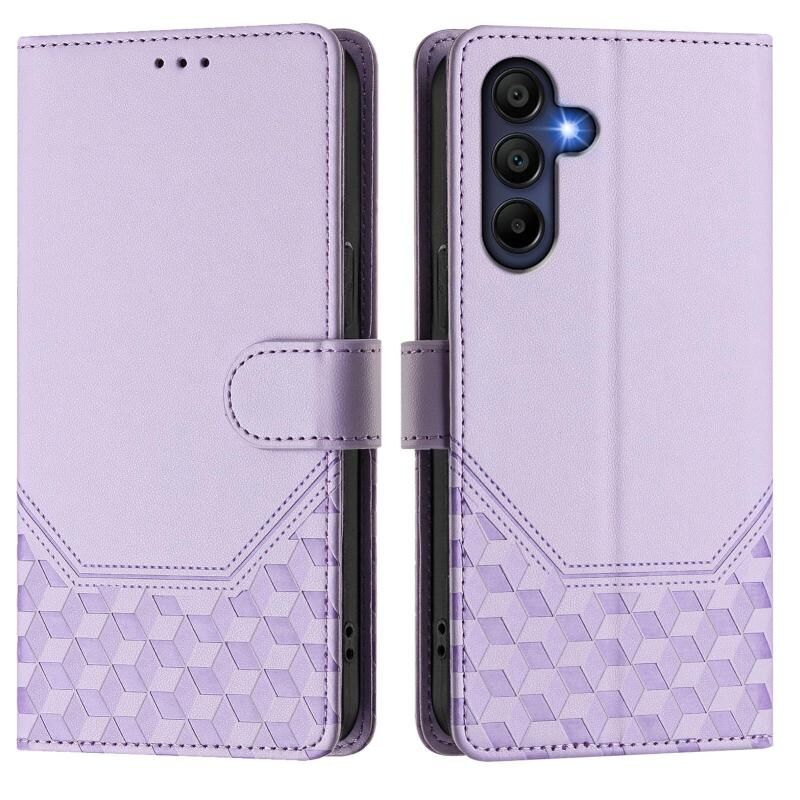 Θήκη τηλεφώνου Samsung Galaxy A17 4G από δέρμα με ανάγλυφο κηρήθρας και τεχνολογία RFID (ανοιχτό μωβ)