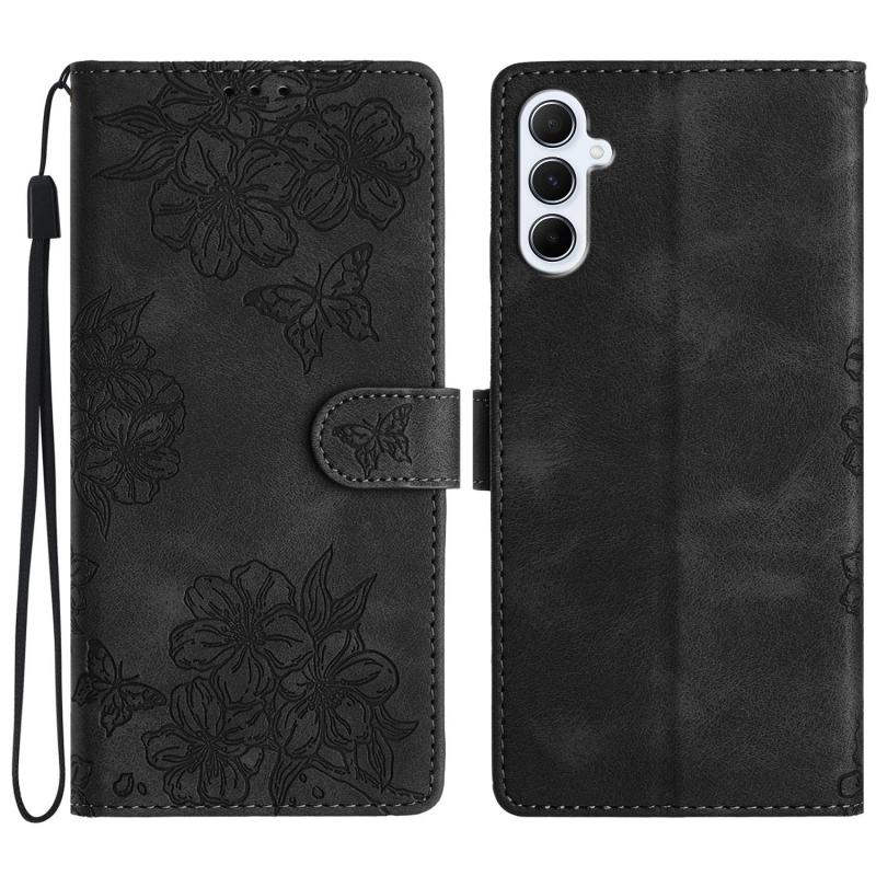For Samsung Galaxy A17 5G Cherry Blossom Butterfly Skin Feel Embossed PU Phone Case(Black)