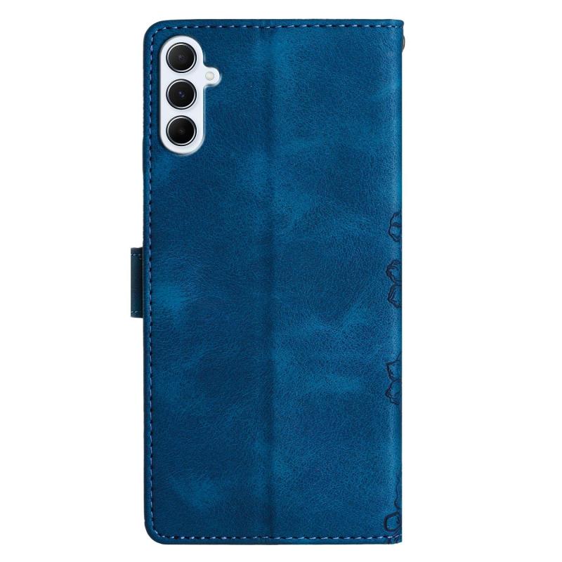 For Samsung Galaxy A17 5G Cherry Blossom Butterfly Skin Feel Embossed PU Phone Case(Blue)