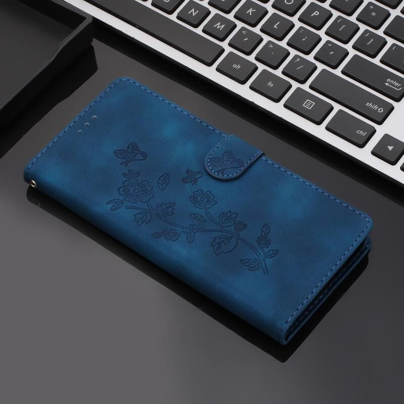 Θήκη τηλεφώνου Samsung Galaxy A17 5G από δέρμα με ανάγλυφο σχέδιο λουλουδιών και πεταλούδων (Μπλε)