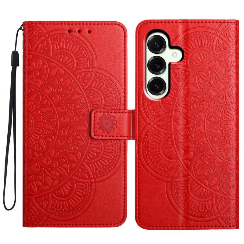 Θήκη τηλεφώνου Samsung Galaxy A17 5G από δέρμα με ανάγλυφο λουλούδι (Κόκκινο)