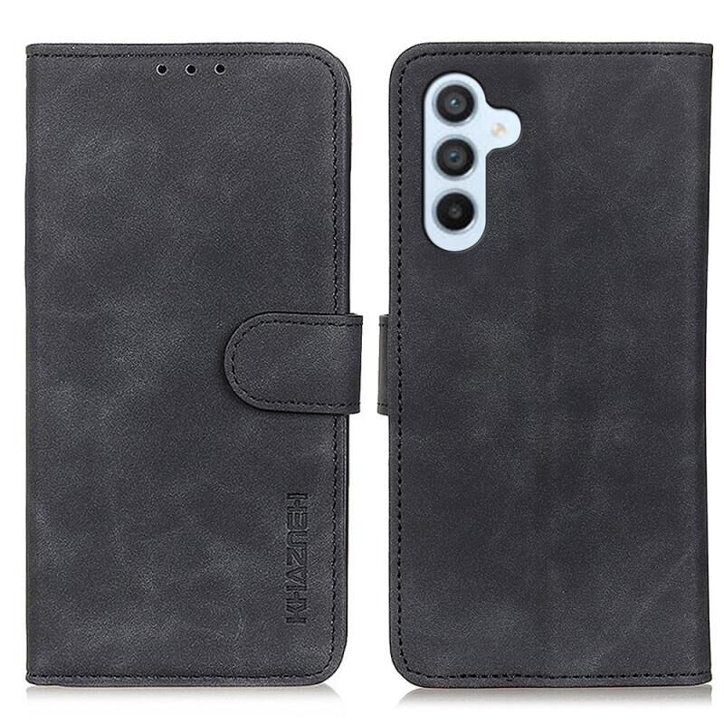 Θήκη τηλεφώνου Samsung Galaxy A17 5G KHAZNEH, δέρμα, οριζόντια αναδιπλούμενη, με ανάγλυφη υφή (Μαύρο)