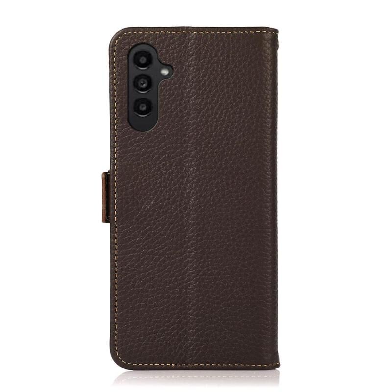 Θήκη τηλεφώνου Samsung Galaxy A17 5G KHAZNEH με μαγνητικό κλείσιμο, από γνήσιο δέρμα Litchi και προστασία RFID (Καφέ)