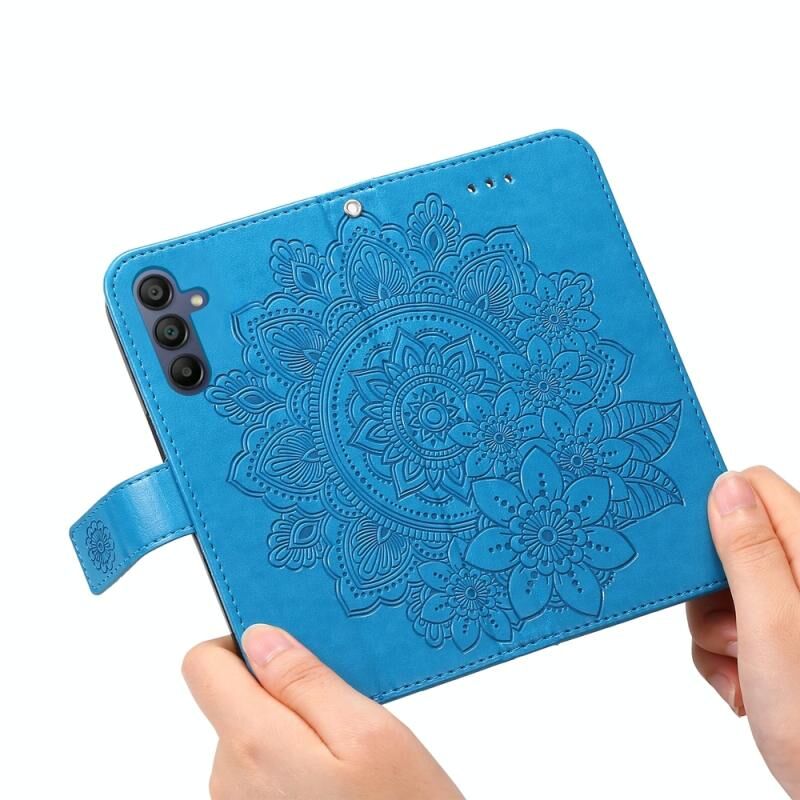 Θήκη τηλεφώνου δερμάτινη με ανάγλυφα επτά πέταλα λουλουδιών για Samsung Galaxy A17 / A26 / A16 5G (Μπλε)