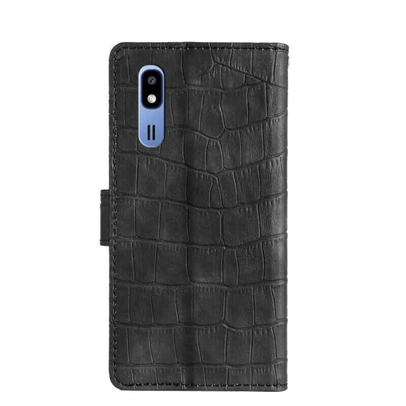 Θήκη κινητού τηλεφώνου Samsung Galaxy A2 Core, υφή δέρματος κροκόδειλου, μαγνητικό κούμπωμα, από δερματίνη PU (Μαύρο)
