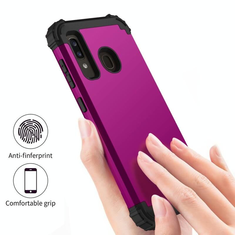 Για Samsung Galaxy A20/A30/A50 PC + σιλικόνη Τρία τεμάχια θήκη αντικραδασμικής προστασίας (Μωβ)