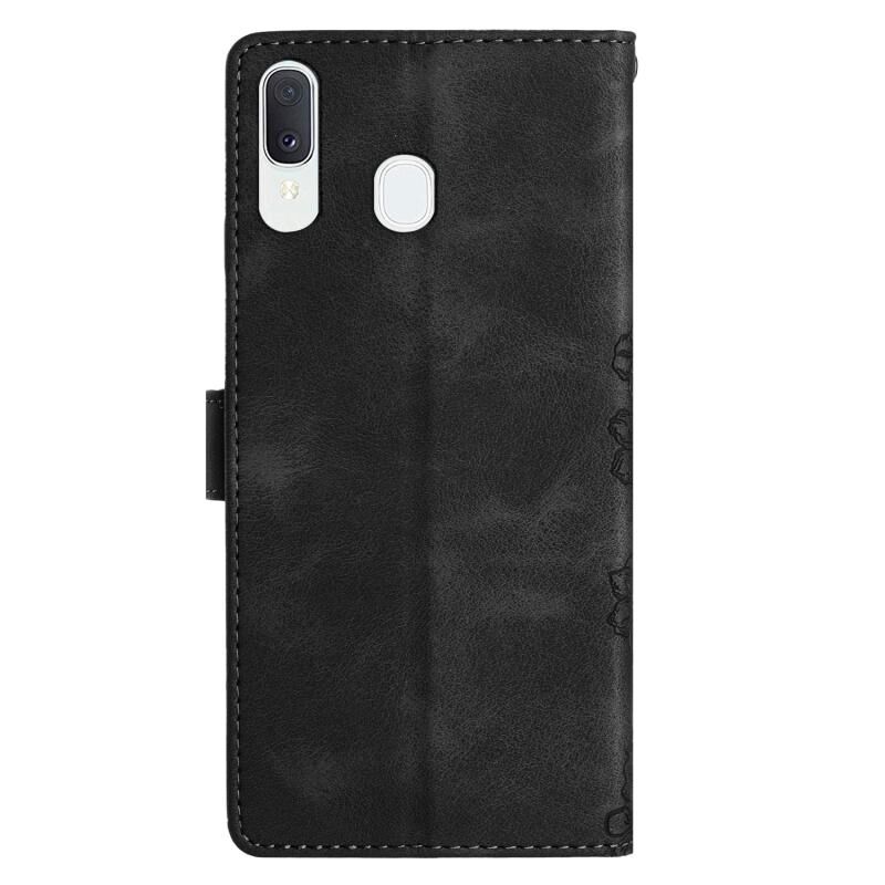 Θήκη τηλεφώνου Samsung Galaxy A20 / A30 με ανάγλυφο PU, αίσθηση δέρματος, σχέδιο Cherry Blossom Butterfly (Κόκκινο)