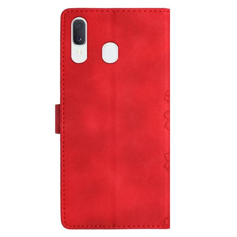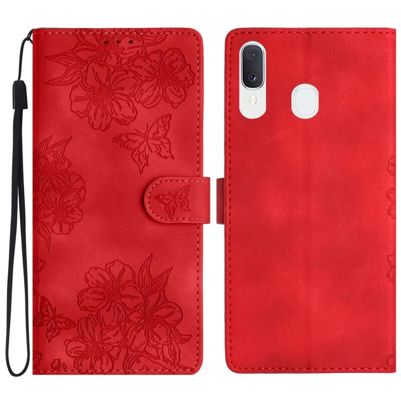 Θήκη τηλεφώνου Samsung Galaxy A20 / A30 με ανάγλυφο PU, αίσθηση δέρματος, σχέδιο Cherry Blossom Butterfly (Κόκκινο)