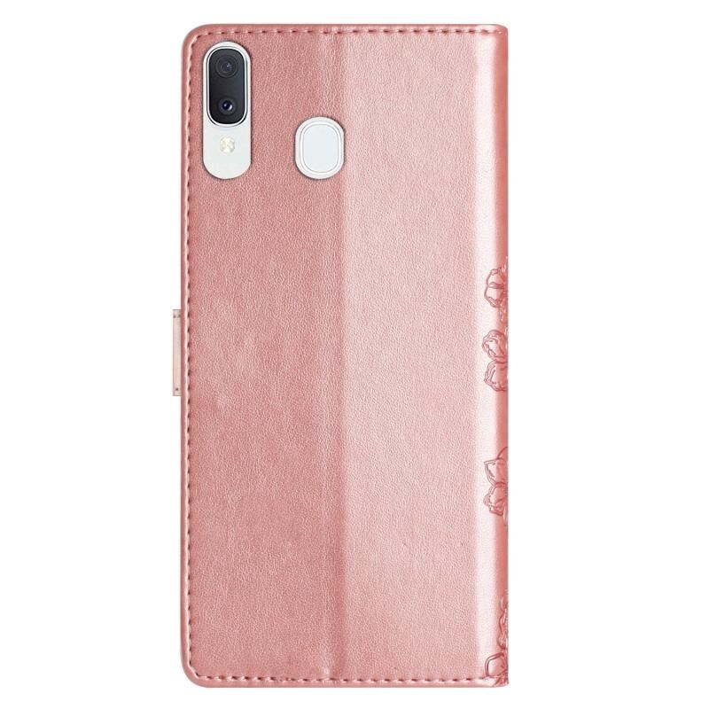 Θήκη τηλεφώνου Samsung Galaxy A20 / A30 με ανάγλυφο PU, αίσθηση δέρματος, σχέδιο Cherry Blossom Butterfly (Κόκκινο)
