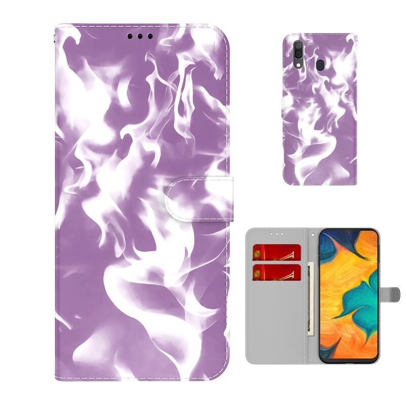 Για Samsung Galaxy A20 / A30 Cloud Fog μοτίβο οριζόντια Flip δερμάτινη θήκη με θήκη & υποδοχή για κάρτες & πορτοφόλι (μωβ)