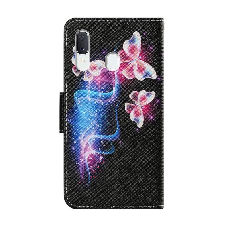 Θήκη Samsung Galaxy A20 / A30 από Δερματίνη PU με Οριζόντιο Άνοιγμα, Πολύχρωμο Σχέδιο, με Θήκη, Θήκες Καρτών, Πορτοφόλι & Λουρί (Τρία Φωτεινά Πεταλούδες)