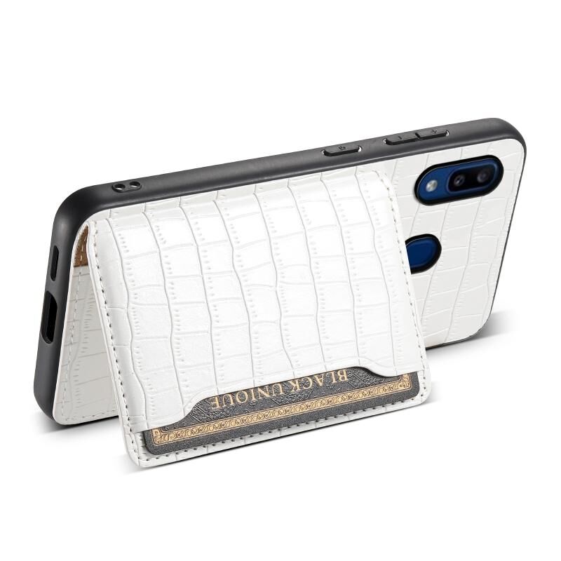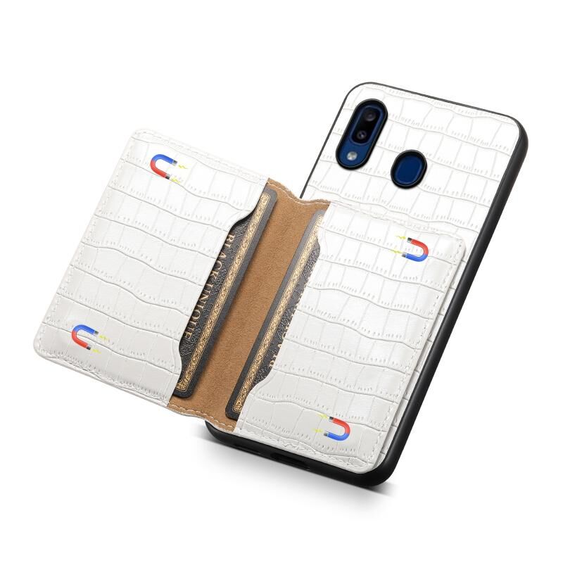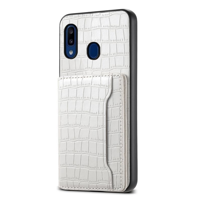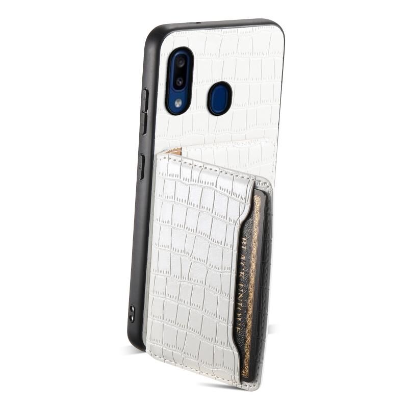 Θήκη τηλεφώνου πλήρους κάλυψης με σχέδιο τσάντας καρτών υφής κροκόδειλου για Samsung Galaxy A20/A30 (Λευκό)