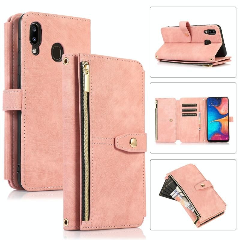 Για Samsung Galaxy A20 / A30 Dream 9-κάρτα πορτοφόλι φερμουάρ τσάντα δερμάτινη θήκη τηλεφώνου (ροζ)
