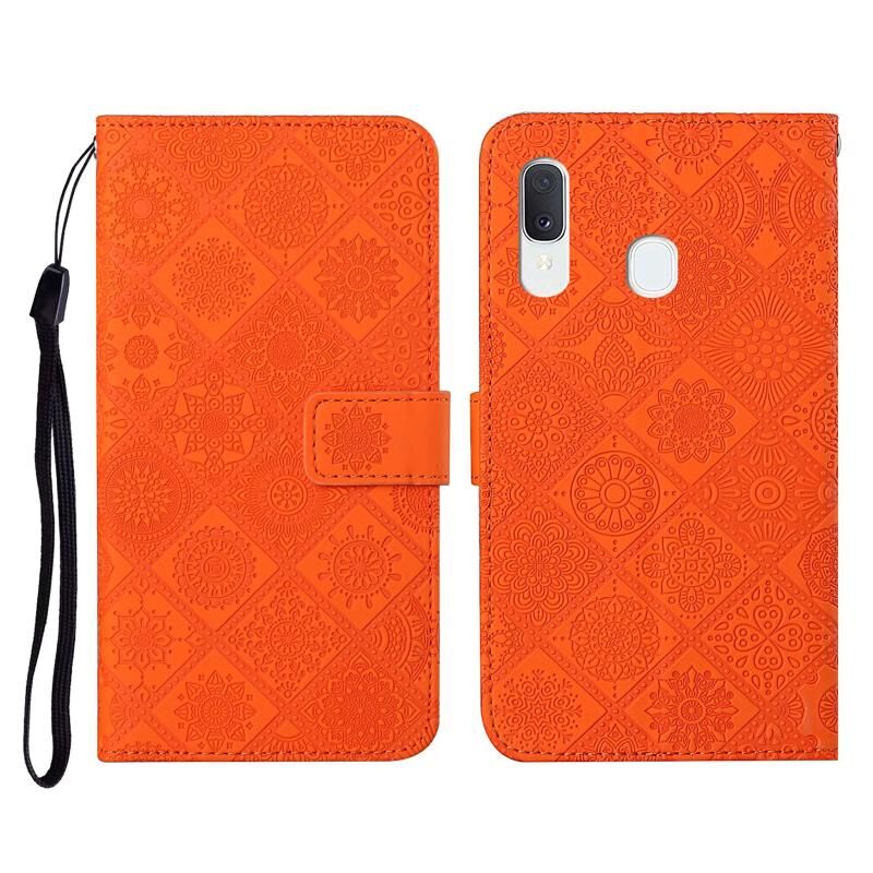 For Samsung Galaxy A20 / A30 Ethnic Style Embossed Pattern Horizontal Flip Leather Case with Holder & Card Slots & Wallet & Lanyard(Orange)