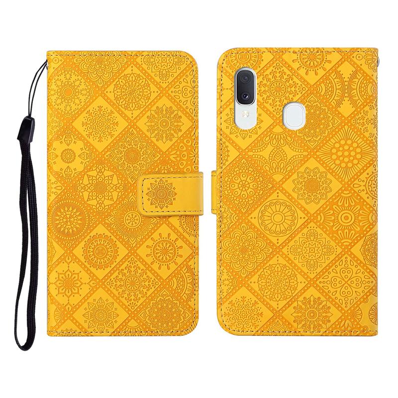 Θήκη Samsung Galaxy A20 / A30, Δερμάτινη οριζόντια θήκη με σχέδιο ανάγλυφο εθνοτικού στυλ, με βάση στήριξης, θήκες για κάρτες, πορτοφόλι & λουρί (Κίτρινο)