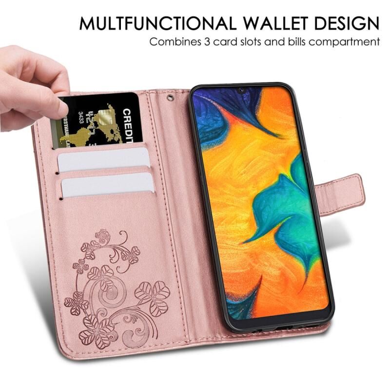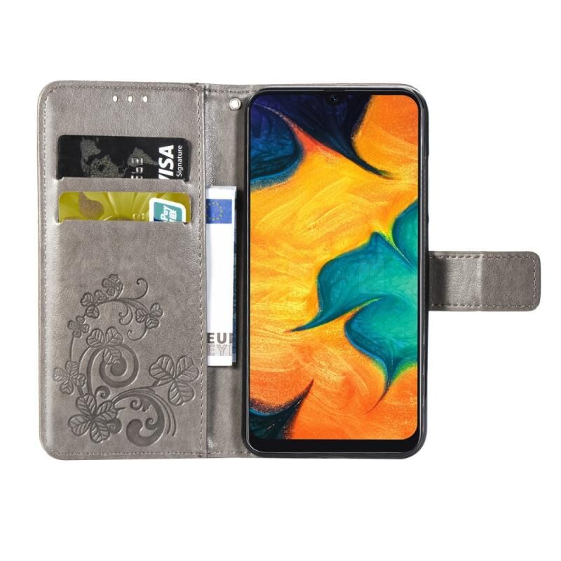 Για Samsung Galaxy A20/A30 Θήκη Προστασίας Κινητού Δέρμα με Κούμπωμα Τριφυλλιού, Ραφτό, με Λουρί, Θήκη Καρτών, Πορτοφόλι & Λειτουργία Στήριξης (Γκρι)
