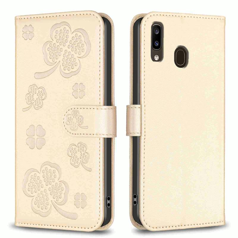 For Samsung Galaxy A20 / A30 Four-leaf Embossed Leather Phone Case(Gold)