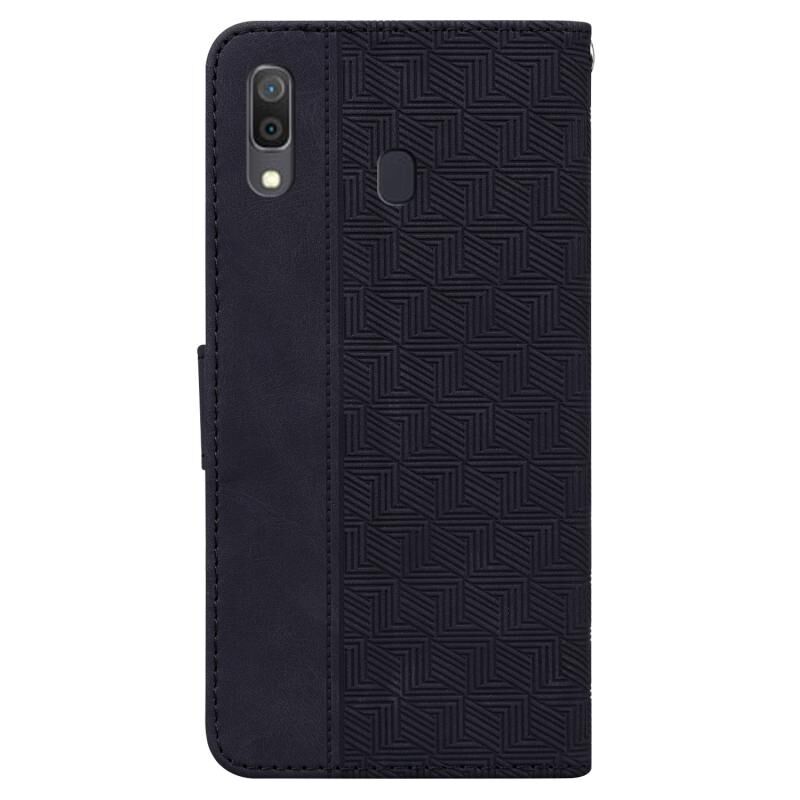 Για Samsung Galaxy A20 / A30 Γεωμετρική ανάγλυφη δερμάτινη θήκη τηλεφώνου (Μαύρο)