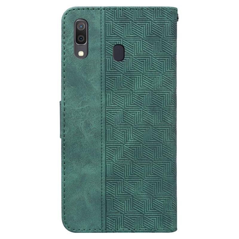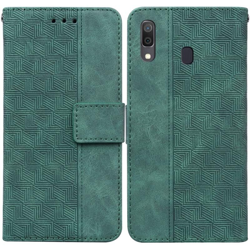 Για Samsung Galaxy A20 / A30 Γεωμετρική ανάγλυφη δερμάτινη θήκη τηλεφώνου (πράσινο)