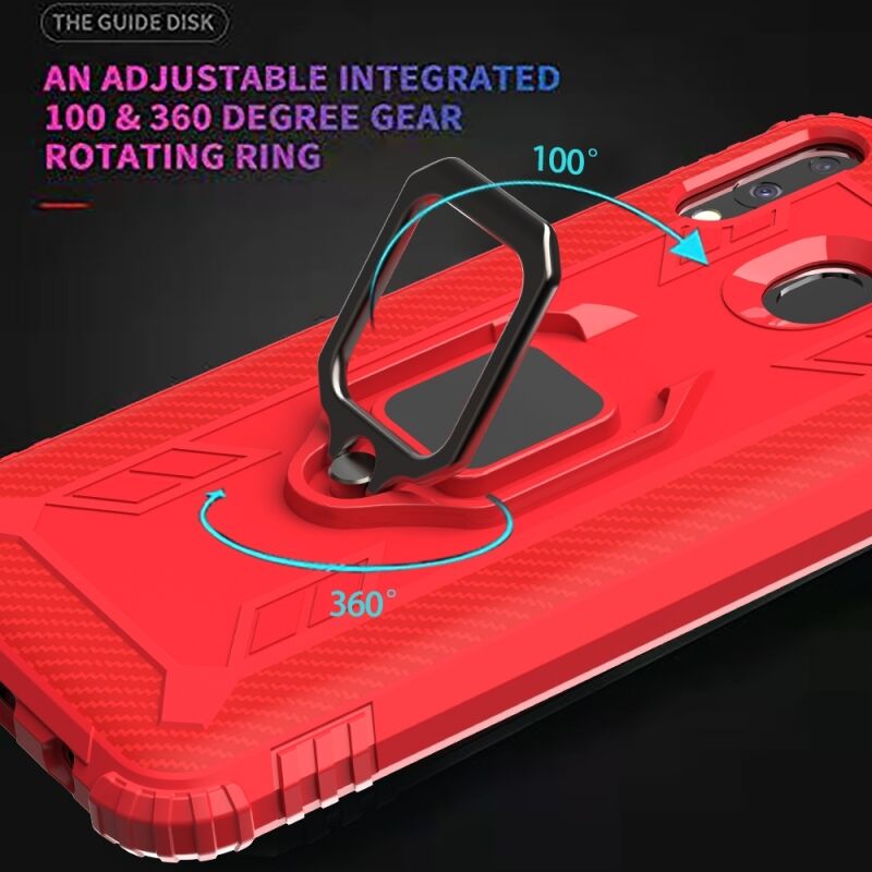 Για Samsung Galaxy A20 / A30 / M10S Carbon Fiber Προστατευτική θήκη με 360 μοίρες περιστρεφόμενη θήκη δακτυλίου (κόκκινο)