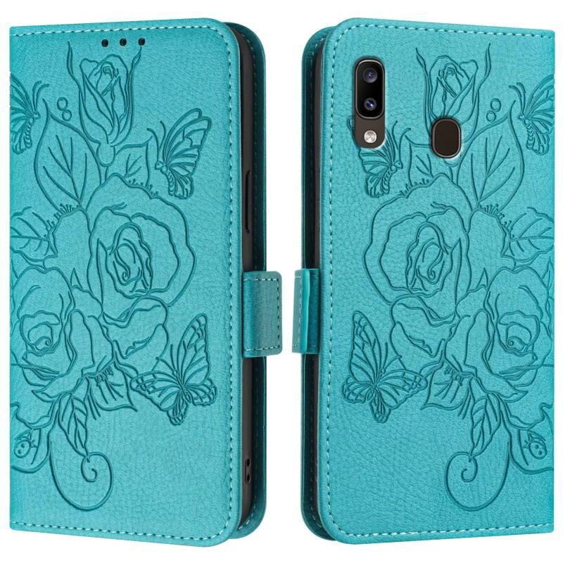 Για Samsung Galaxy A20 / A30 / M10s ανάγλυφο Rose RFID αντικλεπτική δερμάτινη θήκη τηλεφώνου (Ανοιχτό μπλε)